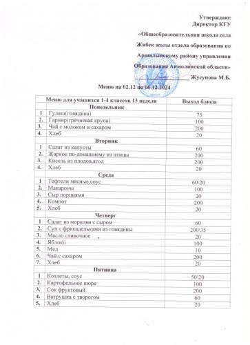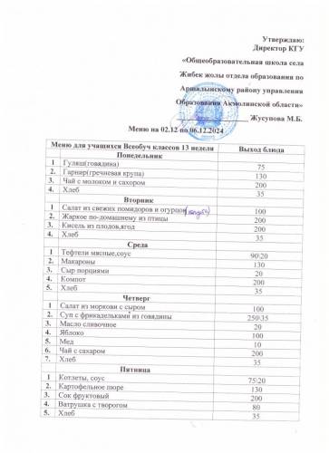 12.03.2024 жылға арналған тағам мәзірі