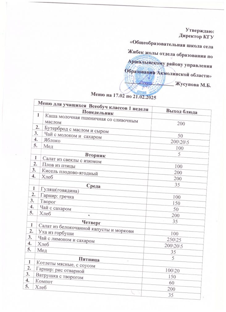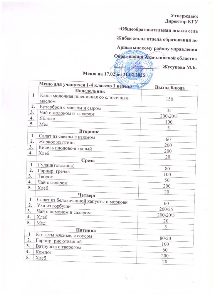 17.02.2025 ж. мәзірі