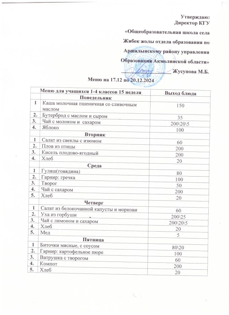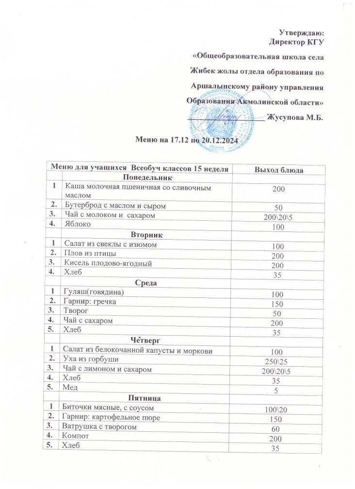17.12.2024 жылға арналған мәзір
