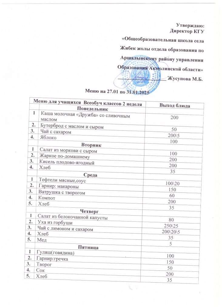 27.01.2025 ж. 31.01.2025 және фотосуреттерге арналған мәзір