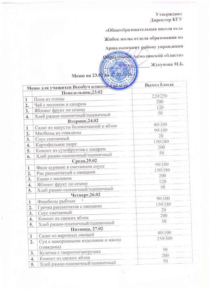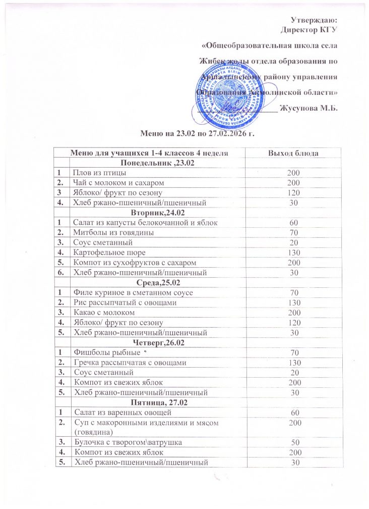 2026 жылғы 23-27 ақпан аралығындағы апталық мәзір