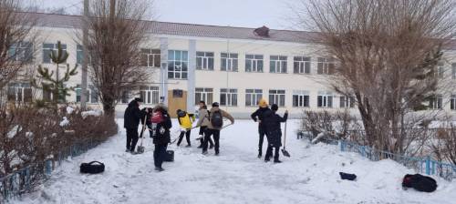 Жібекжолы орта мектебінің еріктілері Жібек жолы ауылының қарттарына ауладағы қарды тазалауға көмектесті.