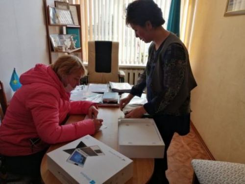 Ноутбуктарды әлеуметтік осал отбасылардан шыққан студенттерге тапсыру.