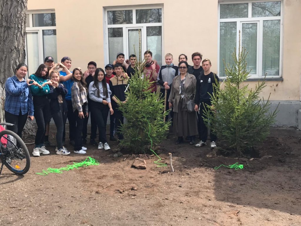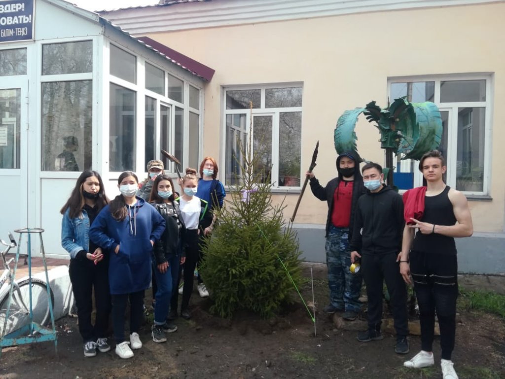 Мектеп түлектері жасыл шыршаларды отырғызды. Бұл акция Екінші дүниежүзілік соғыстағы Жеңіс күніне орайластырылды.