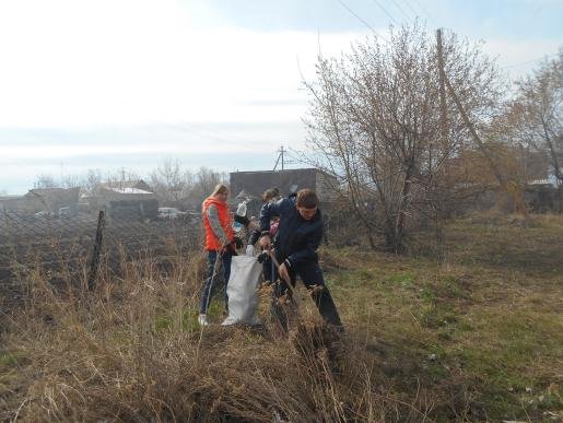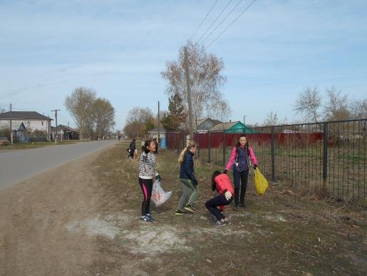 Коллектив учеников и учителей убирали двор школы и улицы села.