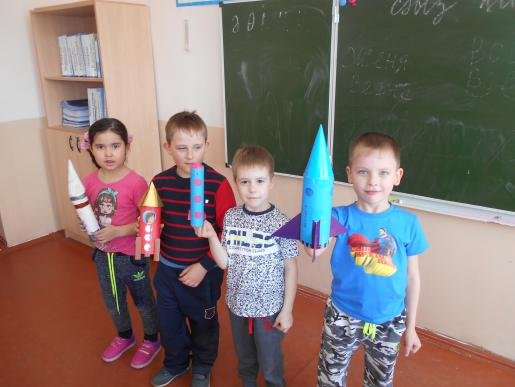 В предшкольном классе проведено мероприятие, посвященное Дню космонавтики. Дети приняли активное участие в конкурсах, сделали интересные поделки.